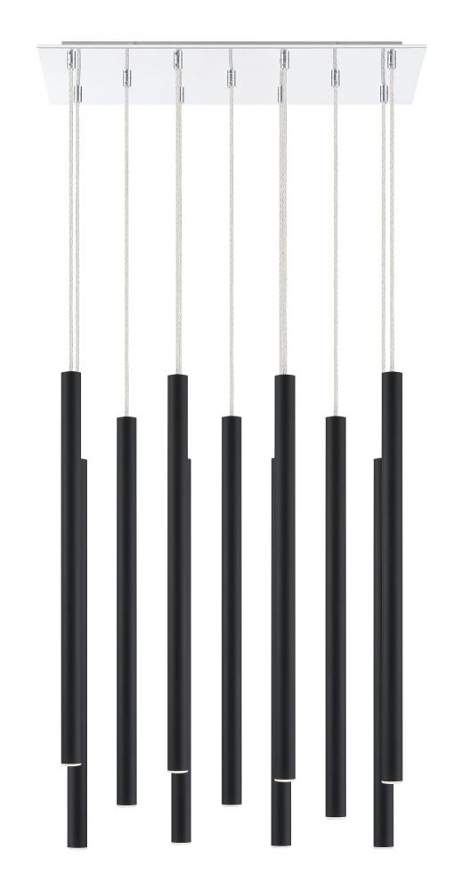Stylish and elongated, this eleven-light pendant light features a matte black finish. Refine a dining or living room with the streamlined sophistication of clean lines.