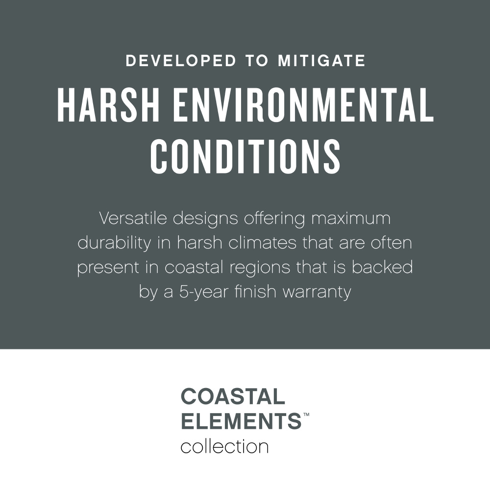Republic’s striking double frame design, constructed from a composite material and treated with an anti-fading agent for maximum durability, is at home on the coast or a country lodge. The Oil-Rubbed Bronze, Satin Nickel, Textured White, and Black resilience finishes feature a 5-year warranty and are resistant to rust and corrosion.