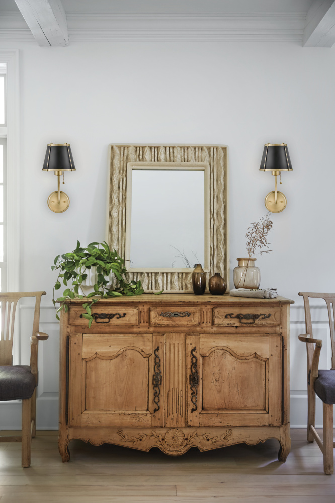 An effortless blend of classic style elements, Clarke’s transitional design is fresh and elegant. Its captivating metal or linen shade and contrasting frame lend architectural beauty to any space with a selection of sophisticated finishes to complement any décor aesthetic.