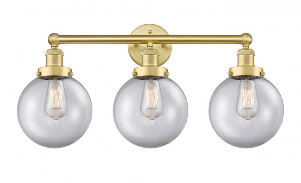 Beacon - 3 Light - 26 inch - Satin Gold - Clear Shade - Bath Vanity Light
