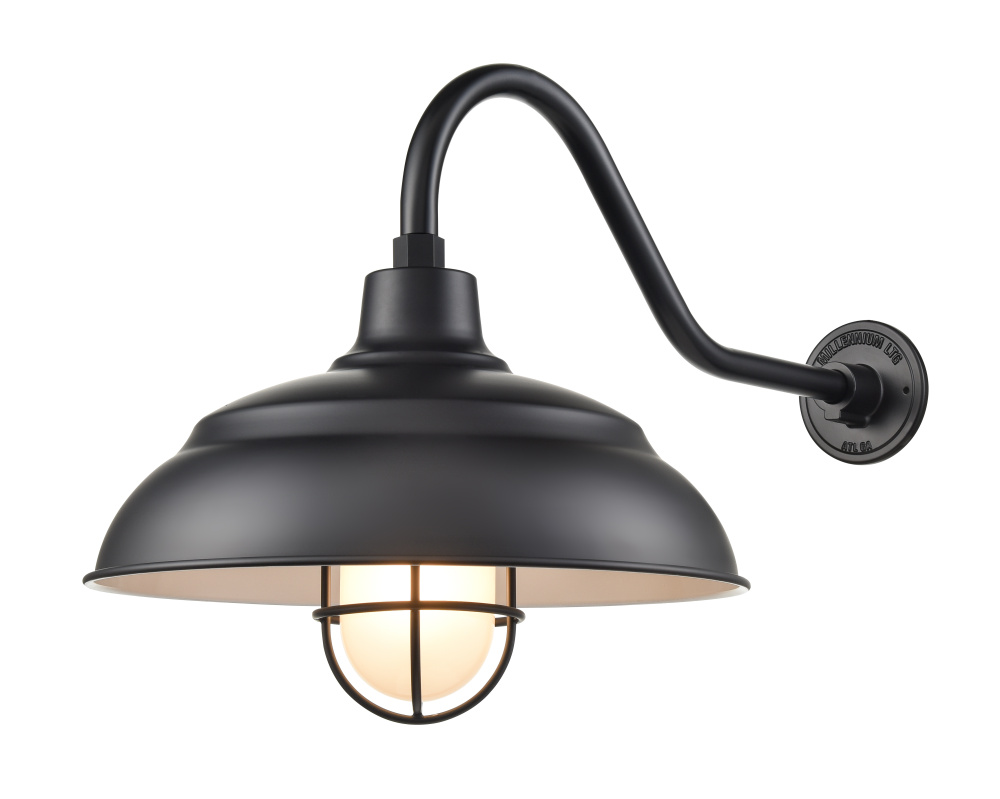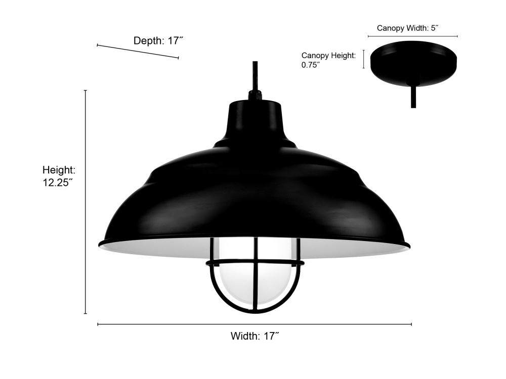 Millennium RWHCGS17-SB - R-Series 17" Wide 1-Light Indoor/Outdoor Warehouse Shade - Satin Black
