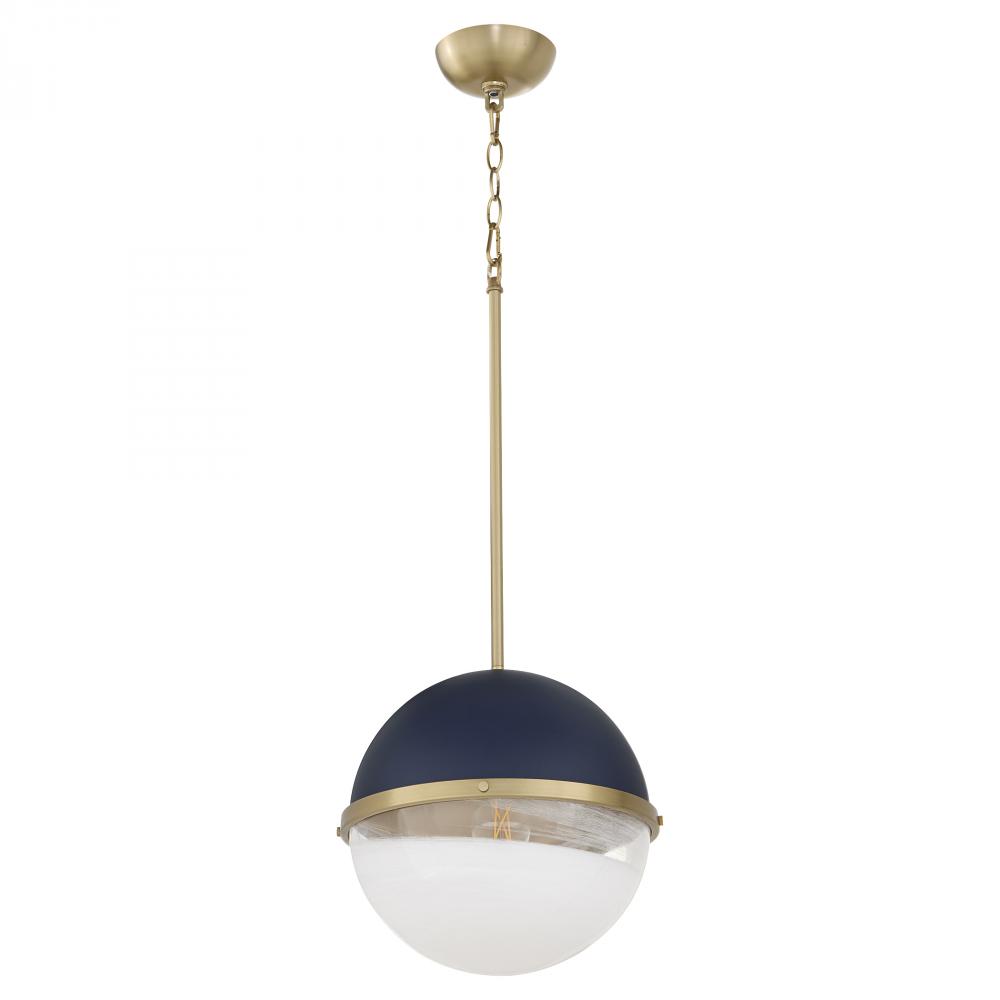 This eclectic one-light pendant is the perfect lighting solution for any modern industrial or nostalgic transitional space. A two-tone spherical shade with a studio white cap and milky glass base is divided by a vintage-inspired capture ring. Decorative screws pair with a matching aged brass chain and stem hanging system to complete the look.