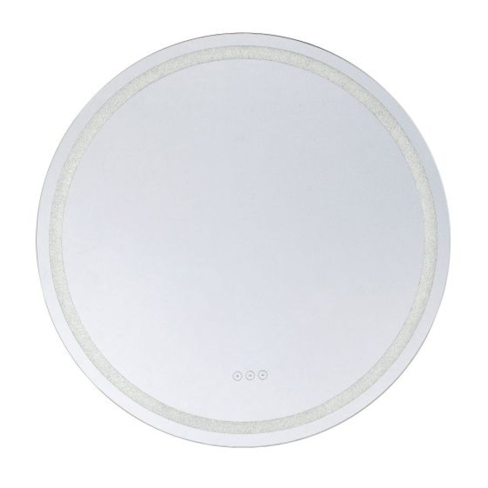 Lovers of glamorous style will find their perfect match in this Savoy House Cordova round front lit LED mirror! Marvel at the thousands of tiny crushed crystals embedded in the frame that add sparkle to the space, whether the light is on or off, and find convenient controls right at your fingertips. Choose from three different color temperatures - 3000K, 4500K and 6500K - to get the glow that is right for you. Use the stepless dimmer to increase or decrease the brightness. Keep things clear with the defogger, which shuts off automatically after one hour. Cordova even remembers and recalls the last used illumination setting! This mirror is free from lead and copper, comes with mounting hardware and is backed by a 3-year warranty. Uses 41 watts to deliver 816 lumens at a CRI of 90+. Suitable for damp locations. Cordova is 32" in diameter and extends 1.88" from the wall.