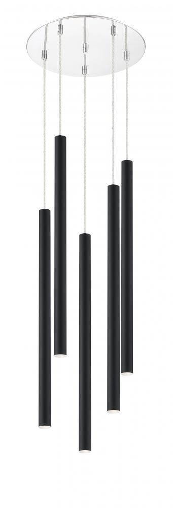 Complete with streamlined lighting, this five-light pendant light boasts a silhouette inspired by a classic windchime. Add up-to-date style with a crisp, matte black finish that creates a contemporary aura.